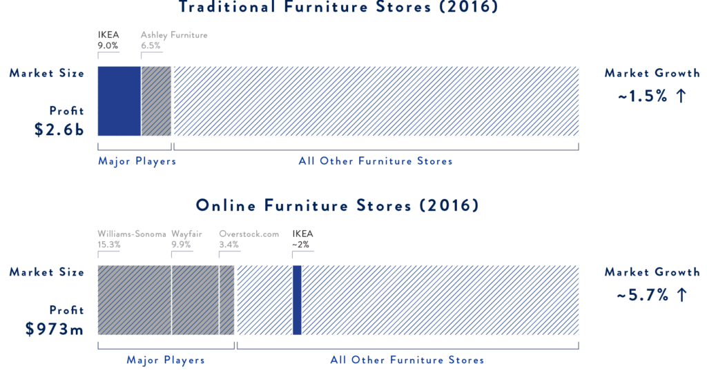 Initially, we knew IKEA was struggling with e-commerce growth despite their stellar showroom experience. Having fallen behind on the growth of popularity of online shopping, can we bring IKEA’s showroom expertise into the online world?
